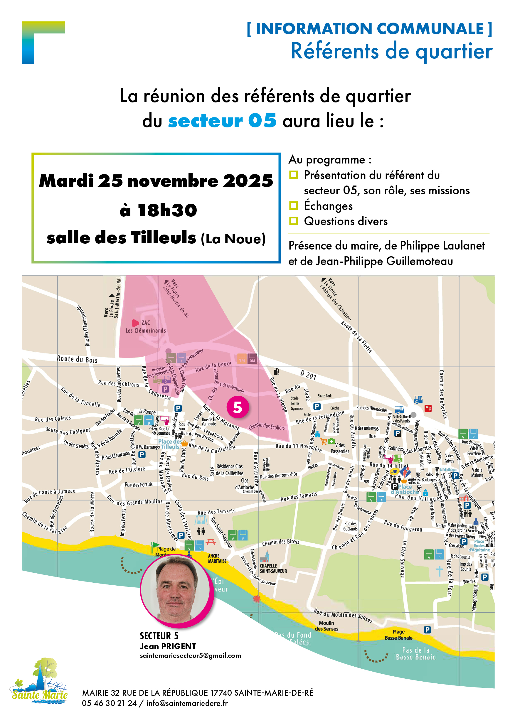 La Réunion de quartier du secteur 5 aura lieu le mardi 25 novembre à 18h30 salle des Tilleuls (La Noue)